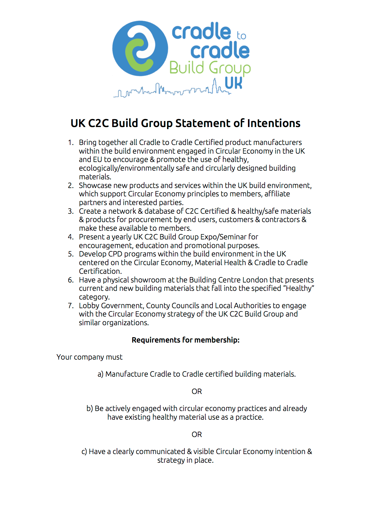 We invite you to read through these and if they resonate, engage us to become a UK C2C Build Group Member in support of a healthier Built Environment in the UK.